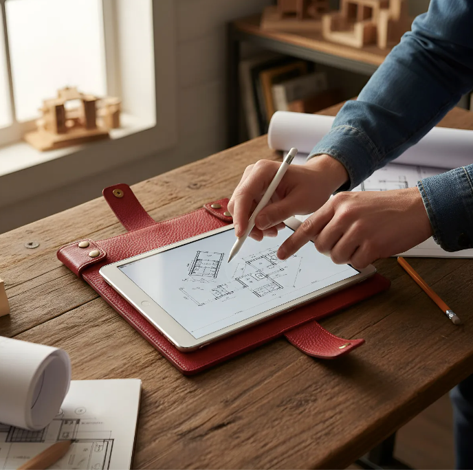 Θήκη για iPad/tablet, κατασκευασμένη από Ολόσωμο Γνήσιο Δέρμα Oλικής άλεσης/Tσόχα.