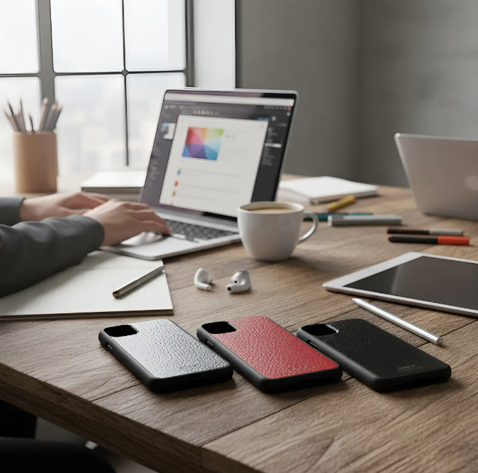 Full-Grain Genuine, Leather Case, vegetable-tanned, Laser-Cut and Engraved, reinforced TPU.