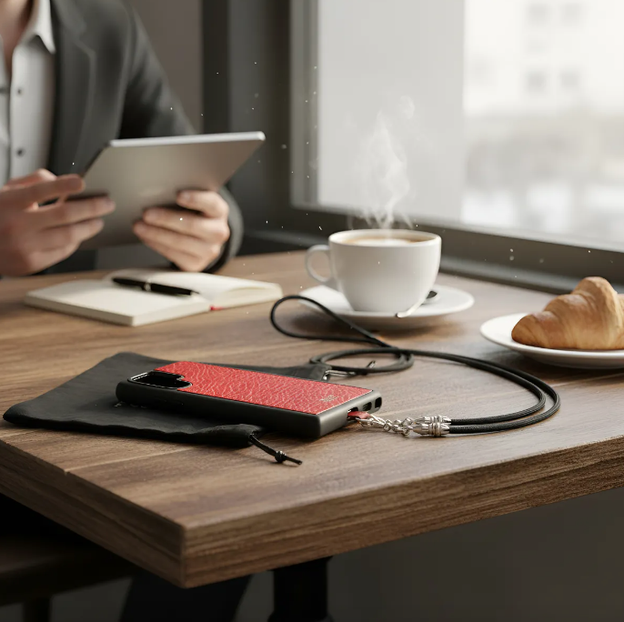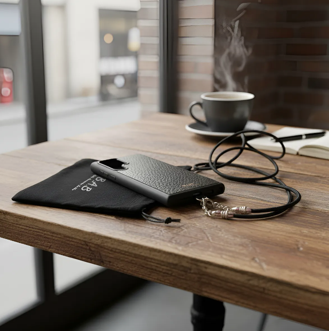 Un diseño vanguardista único y de excelente calidad. Esta Funda/Soporte de Cuero Genuino es el accesorio perfecto para mantener tu celular seguro y a la moda.