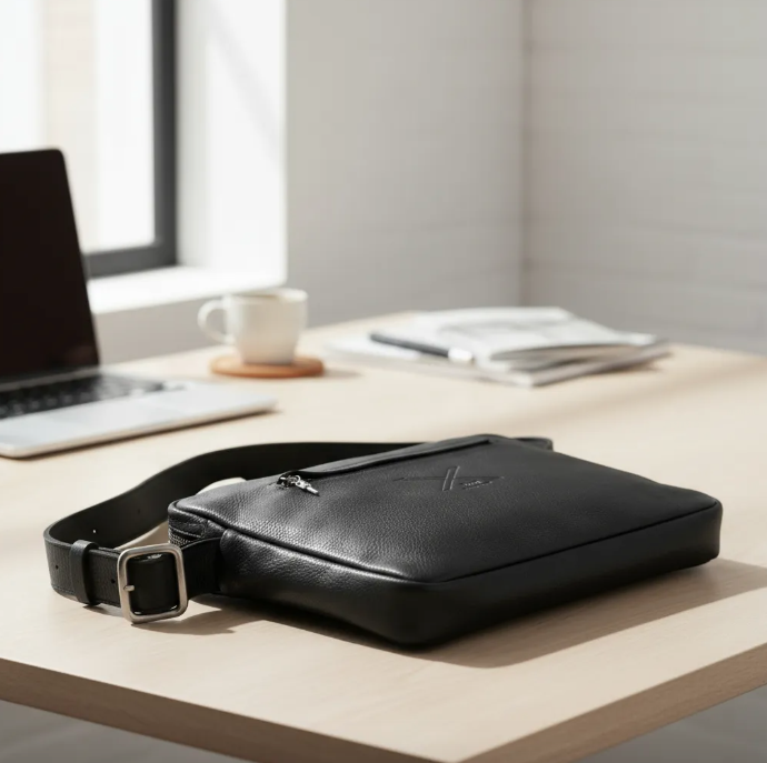 COMPOSITION: Portfolio for MacBook/iPad/tablet made of Black Genuine Full-Grain vegetable-tanned Leather. Fully Felt-lined interior to protect electronic devices from bumps and scratches. 1 External pocket with YKK zipper and a Silver-plated Dagger Charm pull. 1 Internal double compartment for your charger and cables. 1 Internal compartment for storing your MacBook/iPad/tablet. 1 External YKK zipper and a Silver-plated Bronze Dagger Charm pull tab for opening and accessing the interior of the Portfolio. An adjustable external Leather Strap with Buckle.