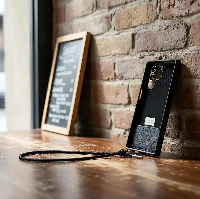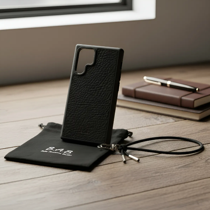 Feito com Couro Genuíno curtido vegetal com tanino e Corda Elástica Preta, este produto oferece durabilidade excepcional e um visual elegante. A Capa, o Suporte Universal de Couro Genuíno para Samsung e a Corda Elástica da B|A|B Leather Goods é o acessório perfeito para proteger e transportar seu dispositivo.